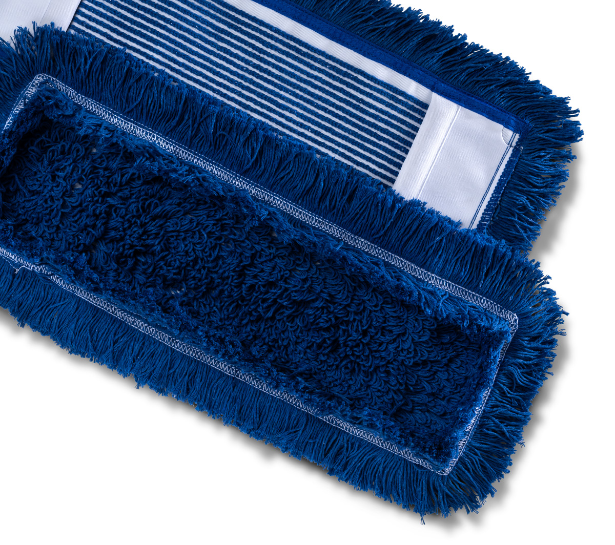 Baumwoll-/Polyester-/Viskosemopp tufting. Verringerte Schmutzsicht auf dem Produkt aufgrund der Färbung der Faser, innen Schlinge, außen Franse.