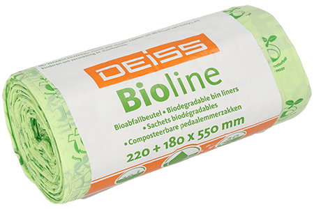 Biologisch abbaubare Bio-Abfallbeutel sind heute in vielen Anwendungsbereichen eine echte Alternative zu konventionellen Müllbeuteln. DEISS Bioline Müllbeutel werden aus überwiegend nachwachsenden Rohstoffen hergestellt, ihr Einsatz als Bio-Abfallbeutel erleichtert die Bioabfallsammlung erheblich.