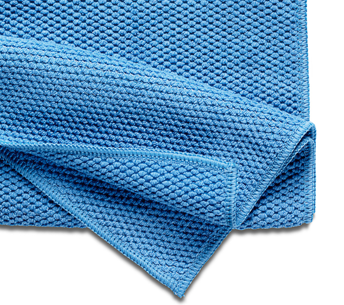 Durch die noppenartige Oberflächenstruktur werden Schmutzpartikel perfekt und porentief aufgefangen. Anschließend durch Ausspülen mit Wasser wieder abgegeben.