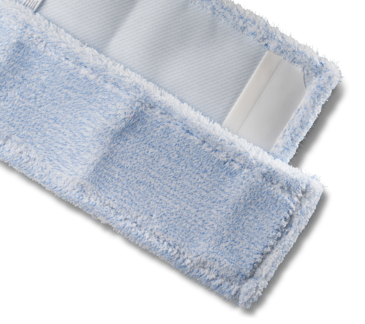 Universal Taschenmopp aus weißem Microplüsch mit stachelartig eingearbeiteten Borsten, bessere Gleitfähigkeit bei rauen bis stark rauen Oberflächen, zusätzlich starke Schmutzlösung durch abrassiv-Wirkung.