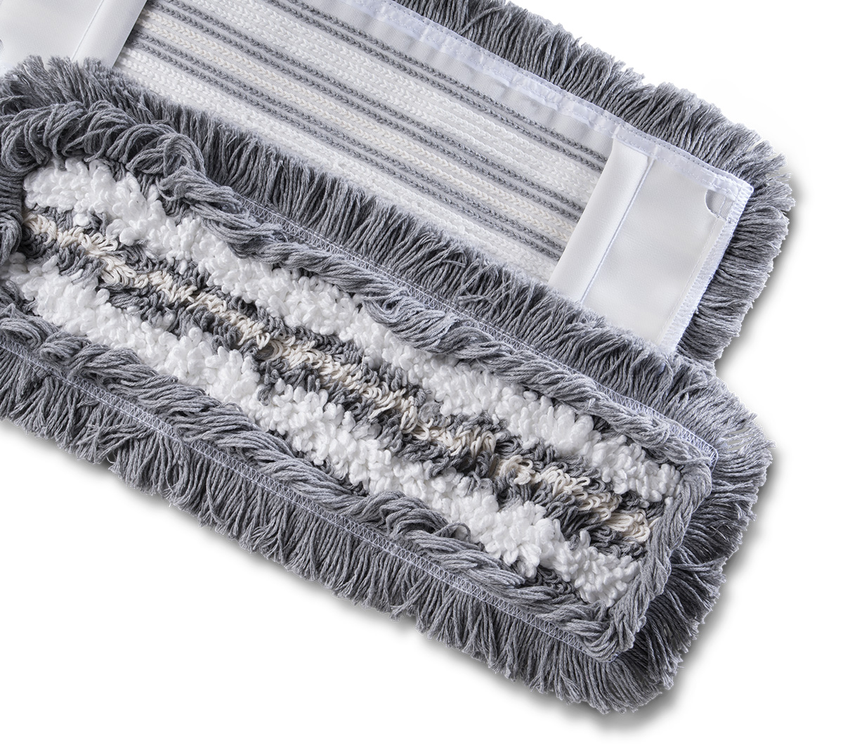 Durch diese Kombination erhält der Wischbezug eine ausgezeichnete Gleiteigenschaft, Saugfähigkeit und Schmutzaufnahme als reine Baumwollbezüge.